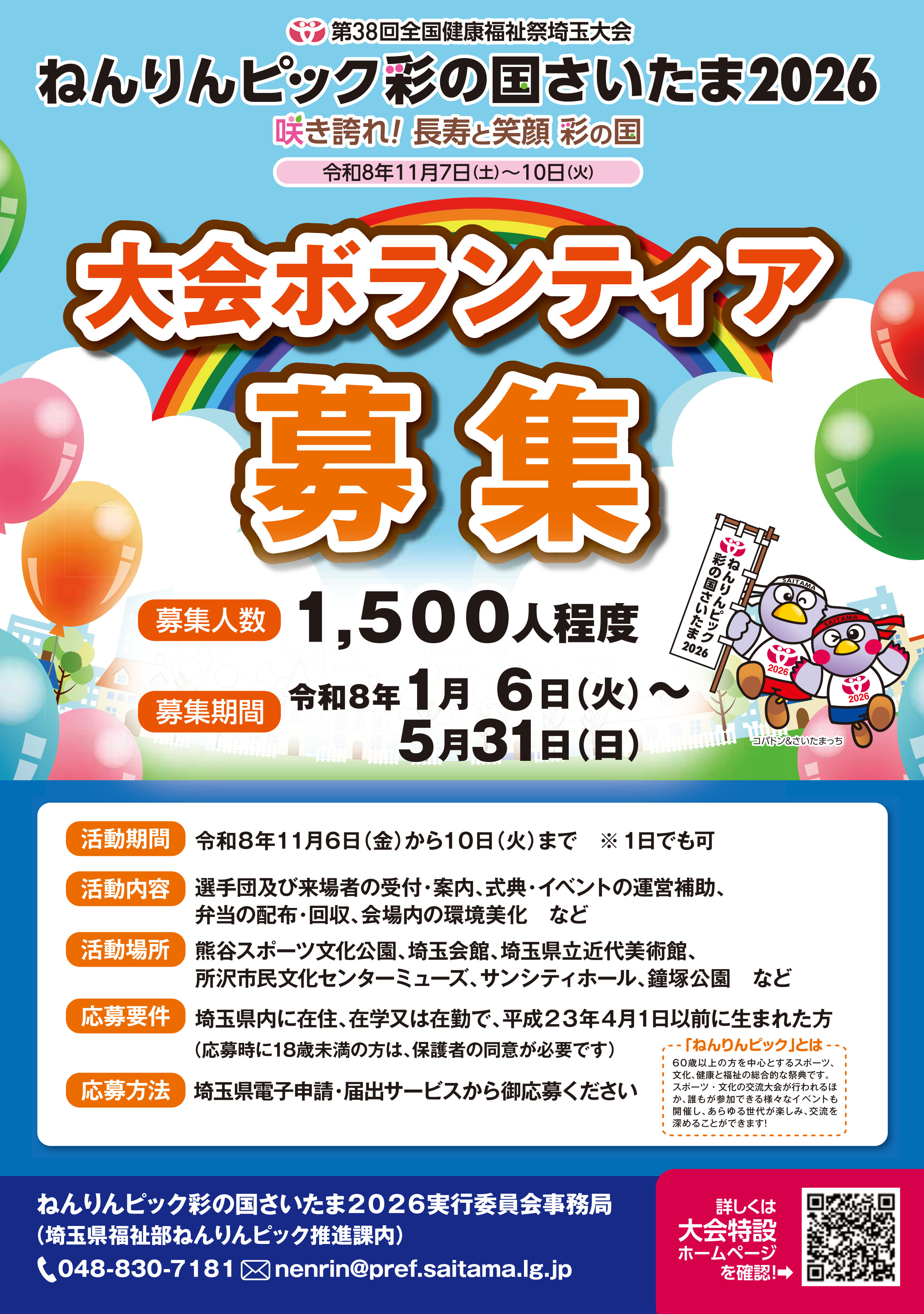 ねんりんピック彩の国さいたま2026 ボランティア募集のお知らせ